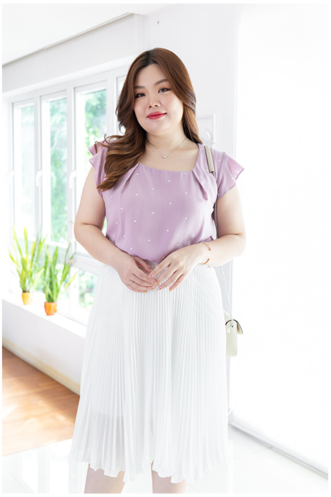งานหวานๆสบายๆมาแล้วค่ะ รุ่นนี้ตัดเย็บด้วยเนื้อผ้าโพลีเอสเตอร์ผสม ทอลายสลาฟในตัว พิมพ์ลายจุดห่างดูคลีน ทรงคอจับจีบปาดเหลี่ยมแบบมนๆ แขนต่อระบายสั้น น่าร้ากกกก