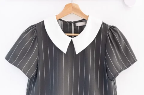 เสื้อทำงานปกบัวตัดปลายแหลมสีพื้น แขนสั้นแบบใส่ง่าย เนื้อผ้าโฟร์เวย์ นิ่ม เส้นใยฟูลายทอของผ้าจะคล้ายเม็ดทราย ทรงมีปกสวยสุภาพ ใส่ได้เรื่อยๆเลยค่ะ