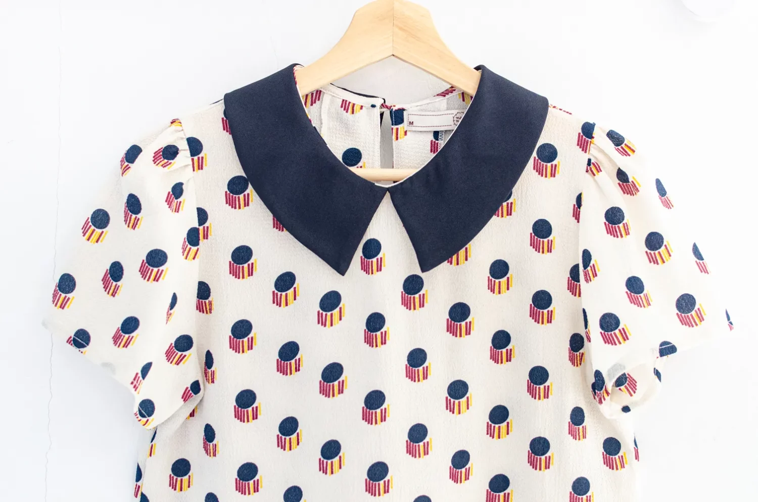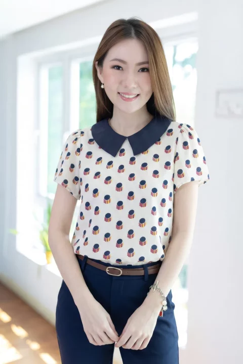MT1301 Point Collar Chiffon Blouse – Vanilla