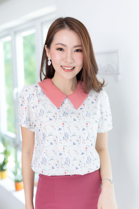MT1301 Point Collar Floral Blouse – Vanilla - Size 40