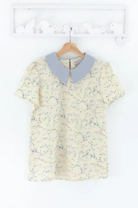 เสื้อทำงานเนื้อผ้านิ่มๆลื่นๆ รีดง่าย ตัวเสื้อใช้ผ้าพิมพ์ลายดอกไม้ ต่อปกบัวตัดปลายแหลมสีพื้น แขนสั้นแบบใส่ง่าย ทรงมีปกสวยสุภาพ ใส่ได้เรื่อยๆเลยค่ะ