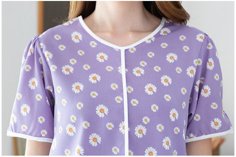 ทรงนี้สวยเก๋มากเลย เสื้อคอกลม แขนสั้น เลือกผ้าลายน่ารักสุดขีด ตัดขอบกุ๊นด้วยผ้าสีพื้นทำให้โดดเด่นขึ้นมา ปลายแขนทั้ง 2 ข้างมีกิมมิคเจาะทรงโค้ง เก๋ๆไก๋ๆ เอาเป็นว่าต้องมีค่ะ