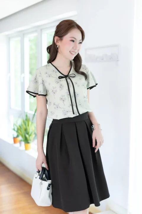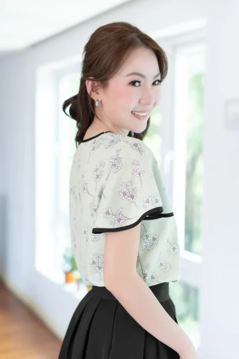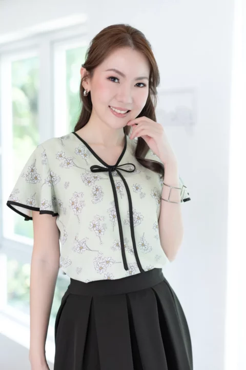 งานหวานๆเย็นๆสวยแบบน่าเอ็นดูมาแล้วค่ะ รุ่นนี้เป็นทรงสวมไม่มีกระดุมหรือซิปหลังใส่ง่ายๆ คอวี แขนผีเสื้อสั้น แต่งกุ๊นสีตัดกับเสื้อดูโดดเด่น หางโบว์ยาวผูกแล้วน่าร้าก ผ้าพิมพ์ลายดอกไม้ มองแล้วสบายตาสบายใจ