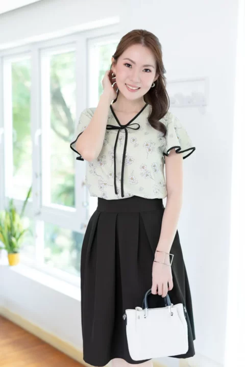 Fabric : โพลีฯเนื้ออัดย่น ยืดเล็กน้อย