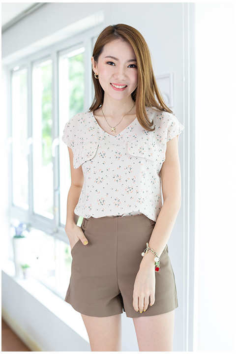 อัพเดทลุคสบายๆด้วยเสื้อทรงชิล แบบแขนล้ำ ทรงคอวีแบบโค้งปาด ด้านหน้าแต่งฝากระเป๋าหลอก 2 ฝั่ง ผ้าโพลีเอสเตอร์สีสวยมากก เป็นแนวเบจสว่าง สีนวลๆนุ่มๆ แมทช์กับท่อนล่างสีพื้นได้ลุคสวยคลีน