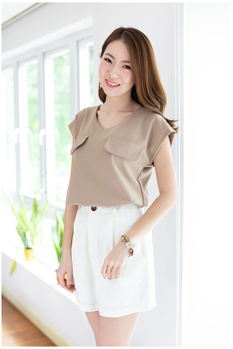 อัพเดทลุคสบายๆด้วยเสื้อทรงชิล แบบแขนล้ำ ทรงคอวีแบบโค้งปาด ด้านหน้าแต่งฝากระเป๋าหลอก 2 ฝั่ง ผ้า Rosa Linen เนื้อดีมี Texture แบบลินิน แต่ผ้าไม่ยับง่าย เนื้อไม่โปร่งแสงมากด้วยค่ะ ได้ลุคสวยๆคลีนๆ
