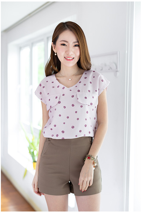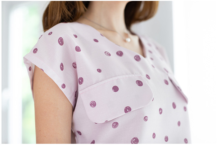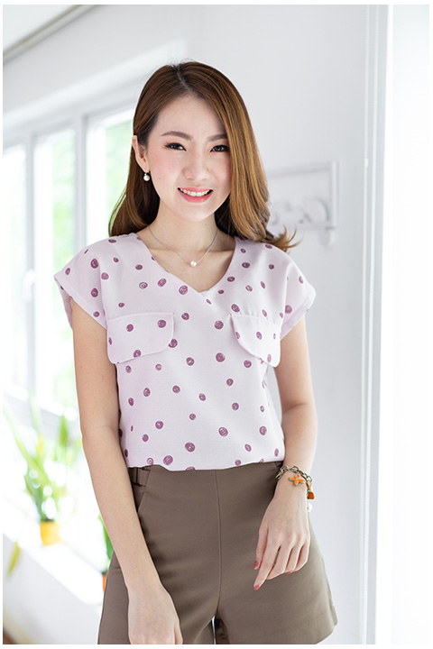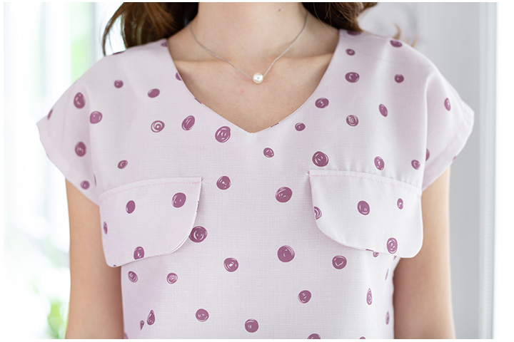 อัพเดทลุคสบายๆด้วยเสื้อทรงชิล แบบแขนล้ำ ทรงคอวีแบบโค้งปาด ด้านหน้าแต่งฝากระเป๋าหลอก 2 ฝั่ง ผ้าโพลีเอสเตอร์มีลายสลาฟในตัว พิมพ์ลายจุด แมทช์กับท่อนล่างสีพื้นได้ลุคสวยๆคลีนๆ