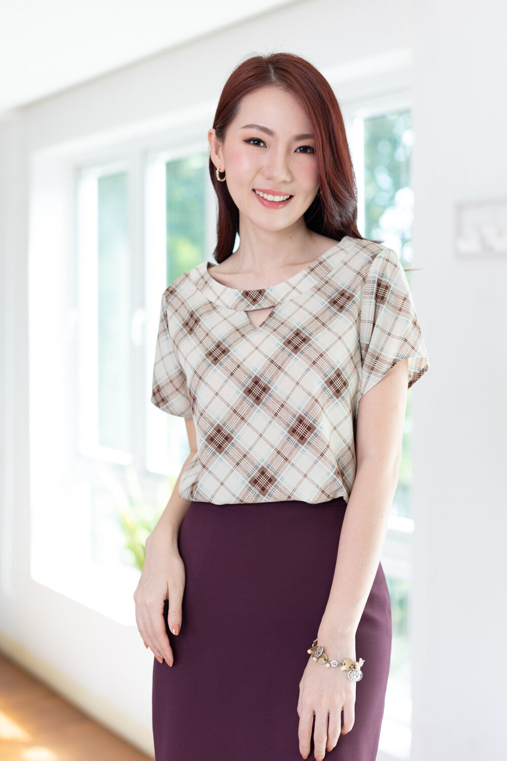MT2001 Keyhole Neck Plaid Blouse – Cream-Choc