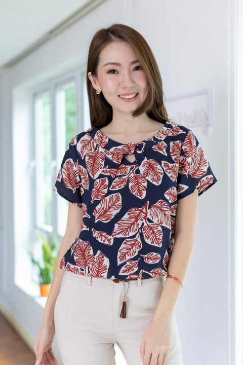 เสื้อทรงปล่อย กับงานโบว์สุดจะน่ารัก พิมพ์ลายใบไม้ คอกลมปาดแต่งขอบหนา เจาะสามเหลี่ยมด้านหน้า มาพร้อมสายสั้นแบบแยกชิ้นไว้ผูกโบว์ เวรี่กุ๊กกิ๊ก ชายเสื้อโค้งๆ เนื้อคอตตอนซิลค์รุ่นนี้ยับนิดๆ มี texture ใส่สบาย เหมาะกับโหมด Vacay ค่า