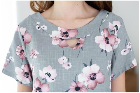 MT2001 Keyhole Neck Flower Blouse – Grey