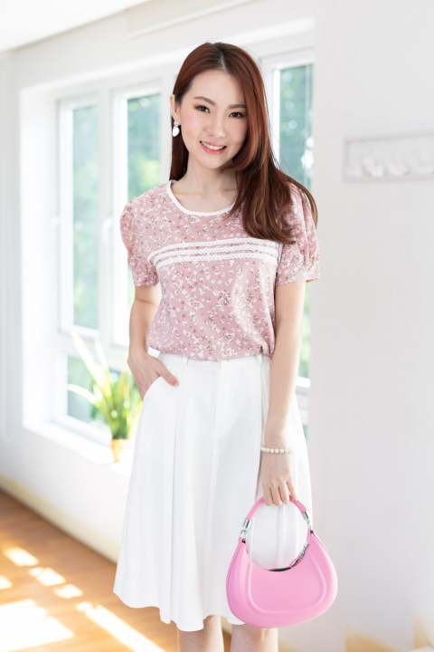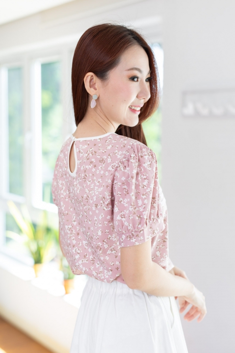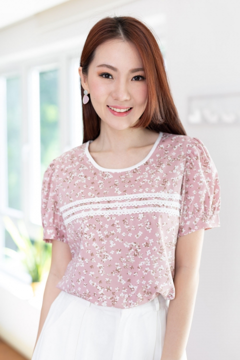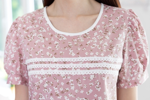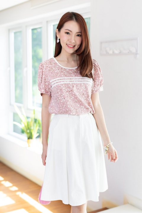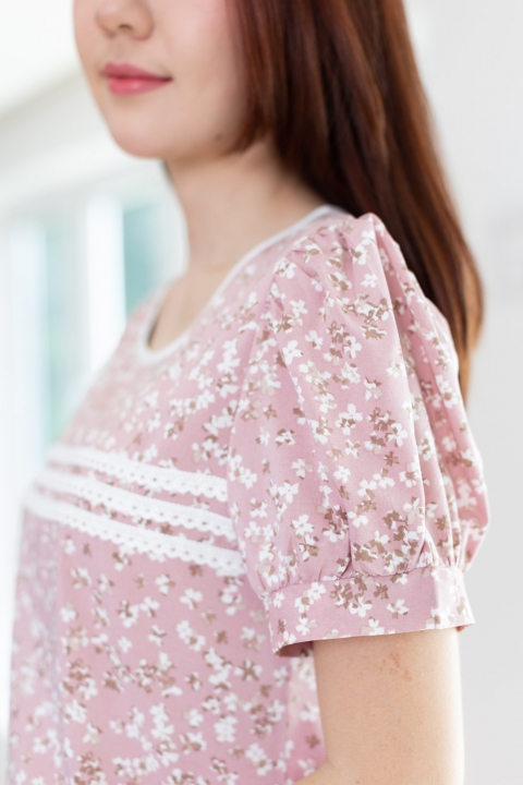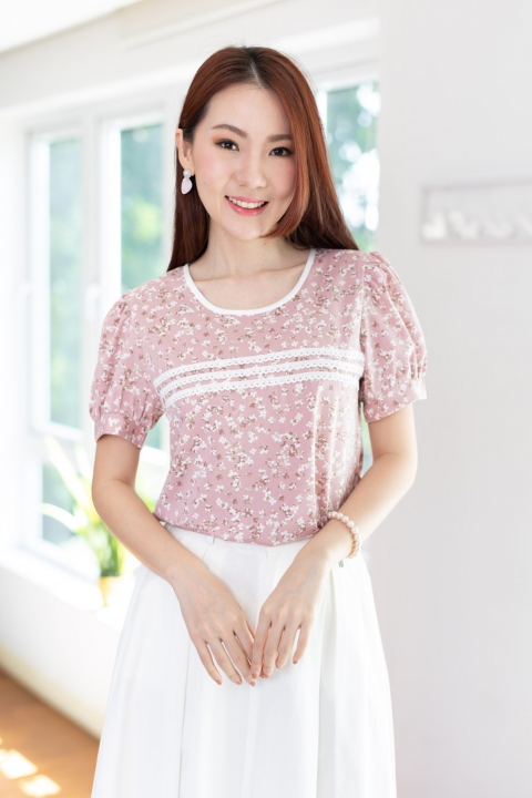 เสื้อน่ารัก! ผ้าพิมพ์ลายดอกไม้ ทรงคอกลมแต่งกุ๊น ต่อแขนบอลลูนพองนิดๆ ด้านหน้าแต่งแถบลูกไม้ ผ่าหยดน้ำติดกระดุมด้านหลัง แมทช์ง่ายๆกับกระโปรงหรือกางเกงก็เอาอยู่ เป็นชิ้นเบสิค( และน่ารัก! ) มีติดตู้ไว้ ใส่ได้บ่อยๆ