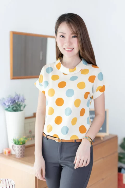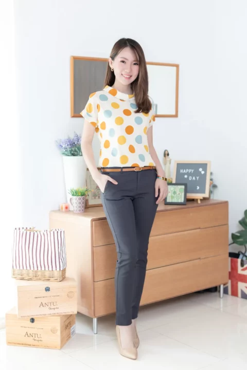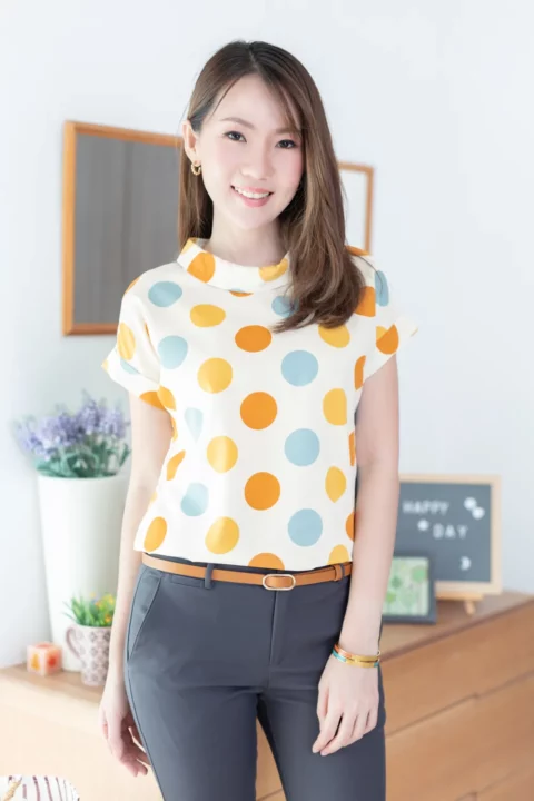 Size 38 – รอบอก 38”, คอกว้าง 9”, ปลายแขนถึงปลายแขน 25”, รอบปลายแขน 15”, ยาว 24.5”, รอบชายเสื้อ 40”