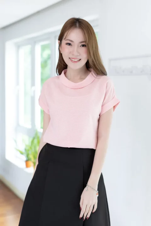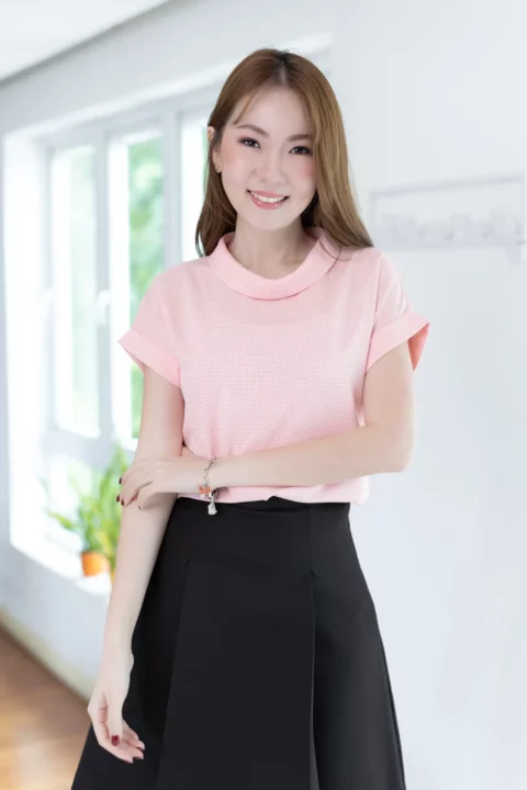 เสื้อดีไซน์ทรงคอม้วน ทรงแขนค้างคาวล้ำๆพับปลายแขนและเย็บฟิกซ์ ด้านหลังปกแหลม ผ่าหยดน้ำ ติดกระดุม รอบนี้เป็นผ้าไหมอิตาลี ผ้าจะนิ่มเนียน พิมพ์ลายชิโนริ ทรงคลาสสิกใส่ได้ตลอดกาลเลย