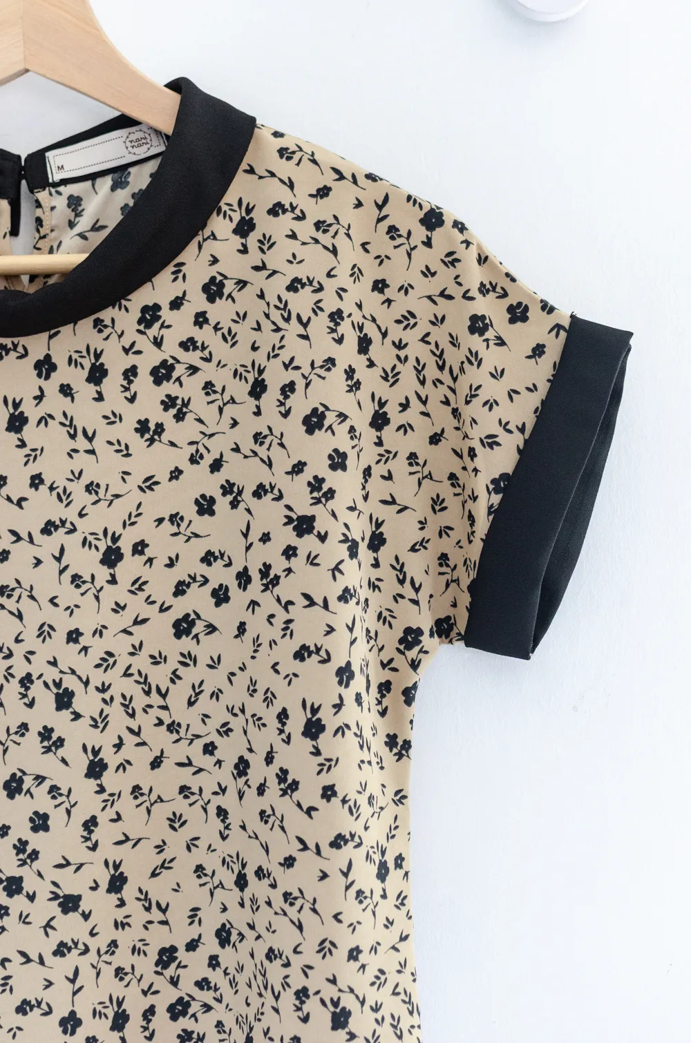 Color : น้ำตาลลาเต้ ลายดอกไม้-ดำ
