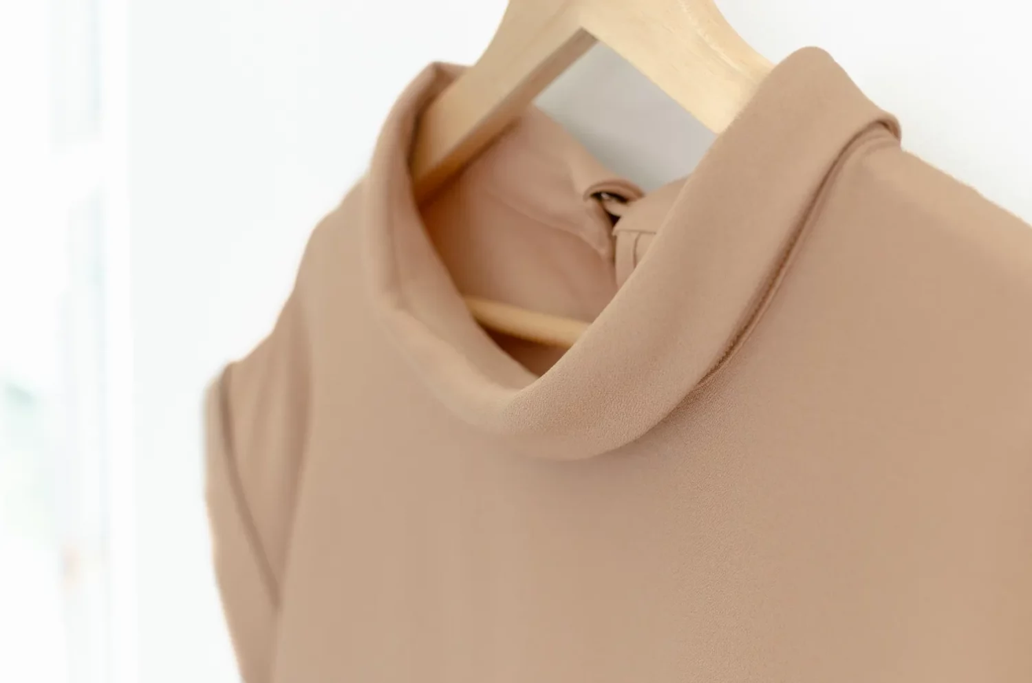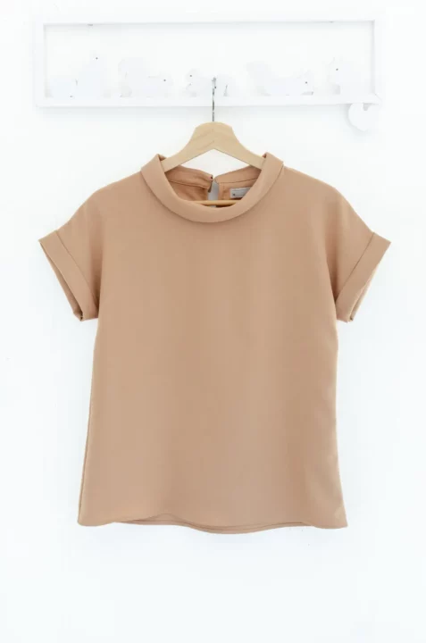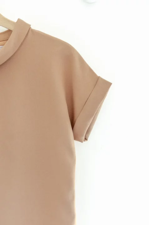 เสื้อดีไซน์ทรงคอม้วน ทรงแขนล้ำพับปลายแขนและเย็บฟิกซ์ ด้านหลังปกแหลม ผ่าหยดน้ำ ติดกระดุม รอบนี้เป็นผ้าโฟร์เวย์ ลายจากการทอผ้าจะเหมือนเนื้อทรายเพราะเส้นใยฟูนิดๆ แต่สัมผัสนิ่ม ผ้ายืดได้นิดๆ ทรงคลาสสิกใส่ได้ตลอดกาลเลย