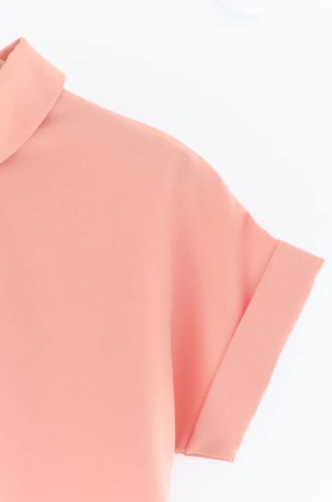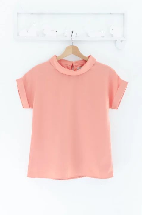 เสื้อดีไซน์ทรงคอม้วน ทรงแขนล้ำพับปลายแขนและเย็บฟิกซ์ ด้านหลังปกแหลม ผ่าหยดน้ำ ติดกระดุม รอบนี้เป็นผ้าโฟร์เวย์ ลายจากการทอผ้าจะเหมือนเนื้อทรายเพราะเส้นใยฟูนิดๆ แต่สัมผัสนิ่ม ผ้ายืดได้นิดๆ ทรงคลาสสิกใส่ได้ตลอดกาลเลย