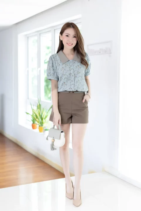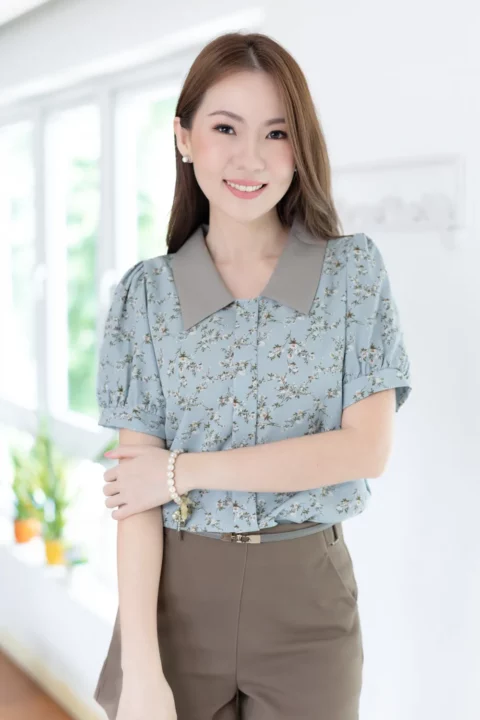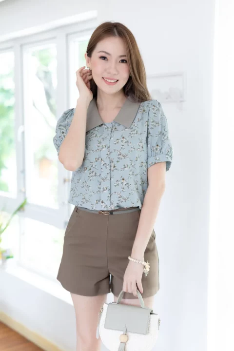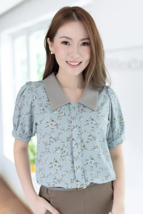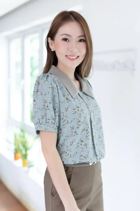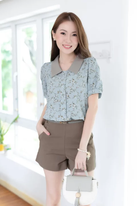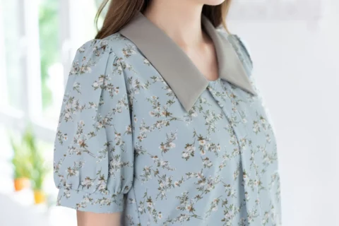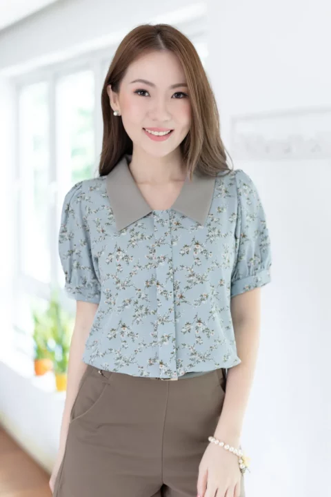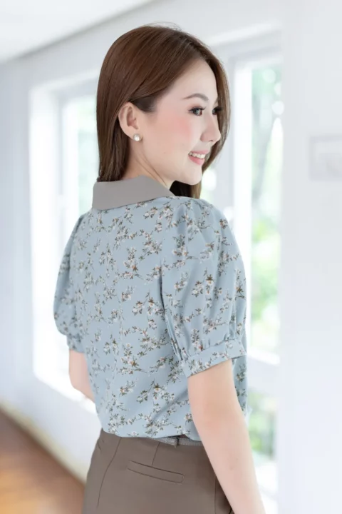 MT2604 Point Collar Placket Blouse – Faded Blue-Grey