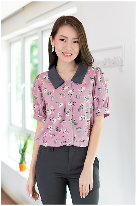 เสื้อทรงสวย แต่งสาบหลอกด้านหน้า ต่อแขนตุ๊กตา Balloon ผ้าลายสวยเนื้อดี ลายพิมพ์ดอกไม้ แต่งปกสีพื้น แมทช์คู่กระโปรง-กางเกงสีพื้นสวยโดดเด่นเลย