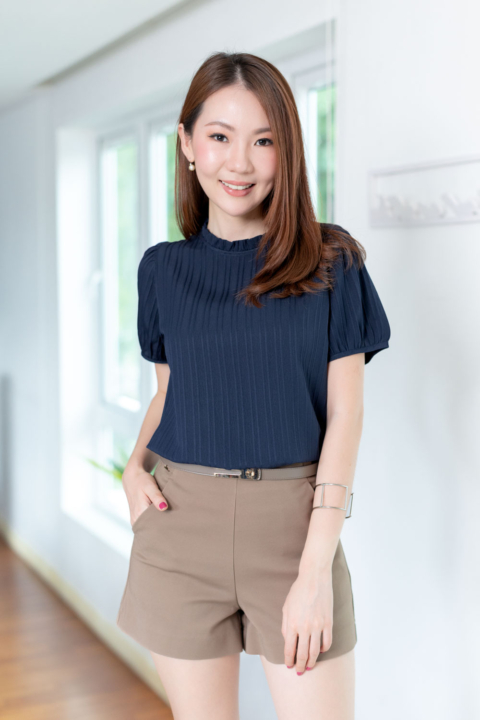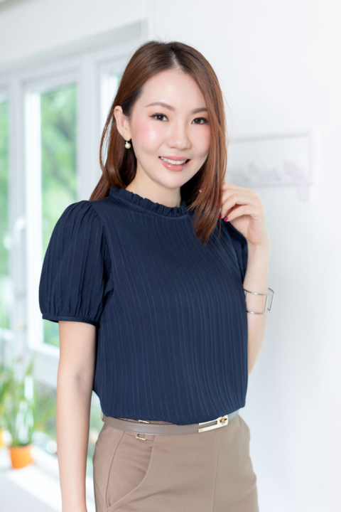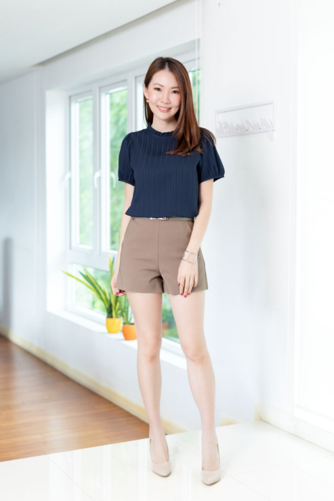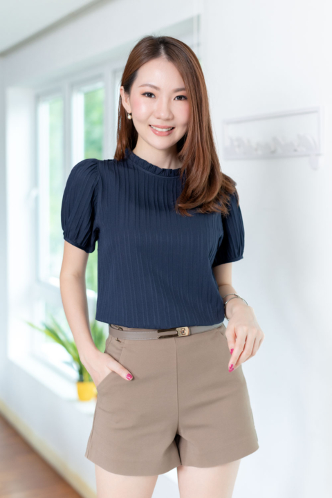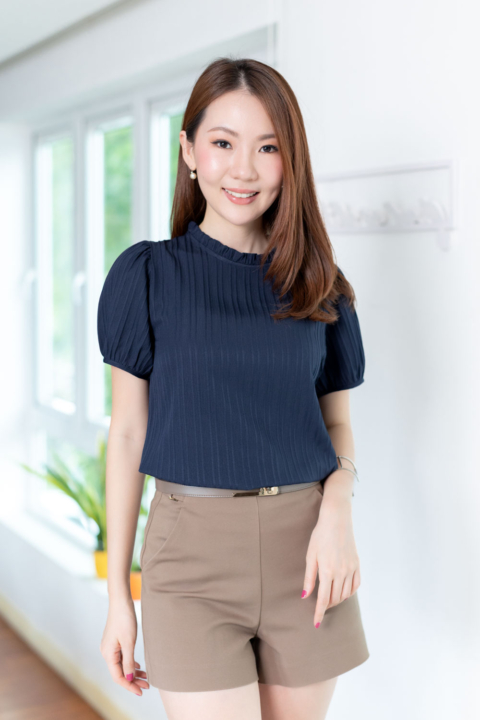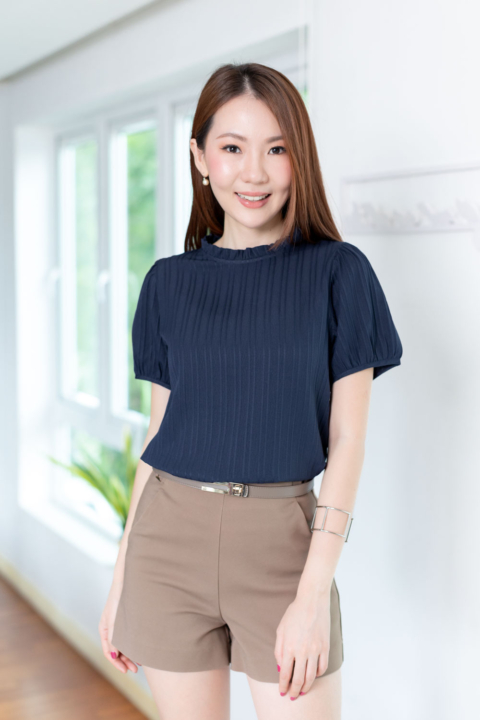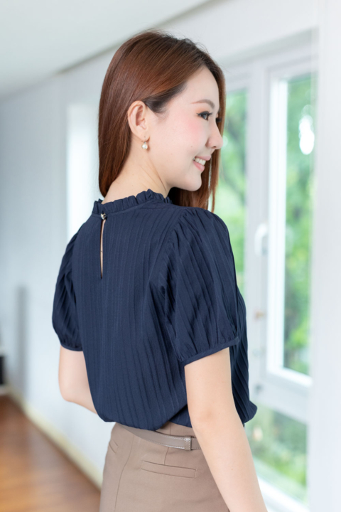 MT2710 Ruff Collar Textured Blouse – Navy Blue