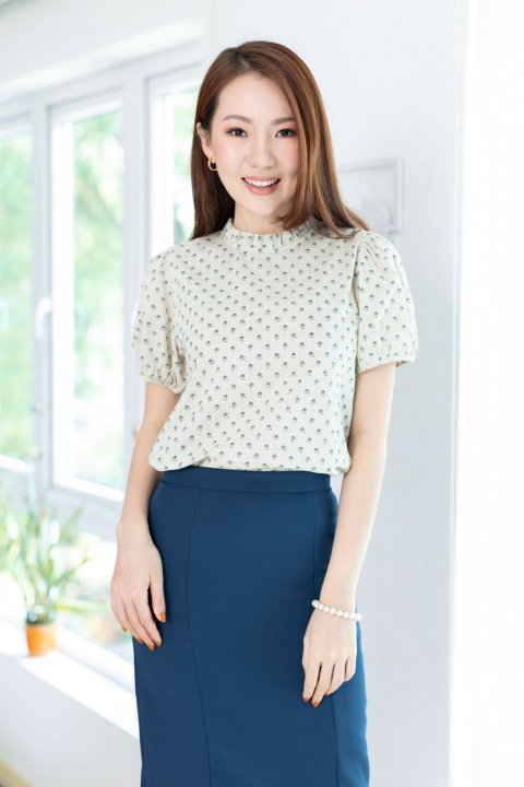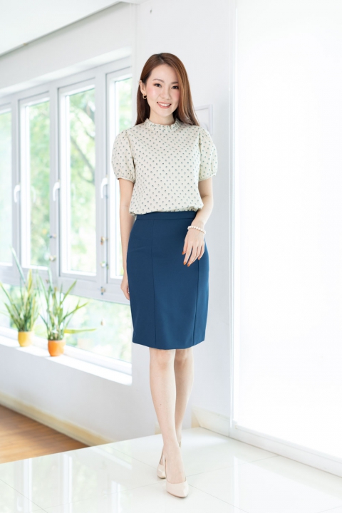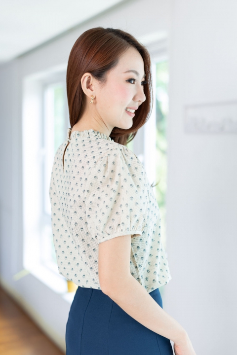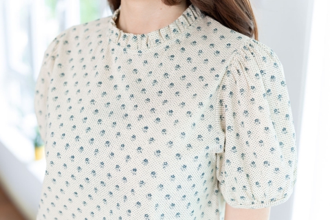 งานสวยหวาน คลาสซี่ดาวล้านดวง เสื้อคอปิดจับจีบตั้งๆ เนื้อผ้าลายจุดและดอกไม้ ทรงสวยโชว์ความพลิ้วของผ้า แขนตุ๊กตาสั้น ด้านหลังผ่าหยดน้ำติดกระดุม รุ่นนี้เนื้อคอตตอนผสม มู้ดดูละมุนขึ้นกว่าเดิมด้วยนะ
