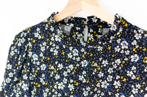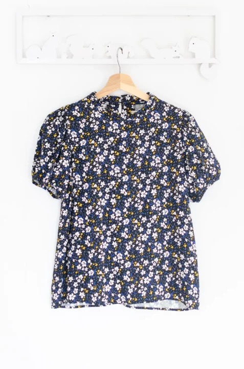 MT2710 Ruff Collar Midnight Garden Blouse – Black