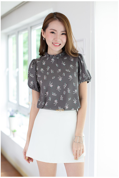 งานสวยหวาน คลาสซี่ดาวล้านดวง เสื้อคอปิดจับจีบตั้งๆ เนื้อผ้าทิ้งตัวนิดๆ ลายช่อดอกไม้ เป็นชีฟองเกรดหนาขึ้นมานิดนึงนะคะไม่บางยุ่ยแน่นอน แขนตุ๊กตาสั้น ด้านหลังผ่าหยดน้ำติดกระดุม สาวกชีฟองถูกใจแน่นอนค่ะ