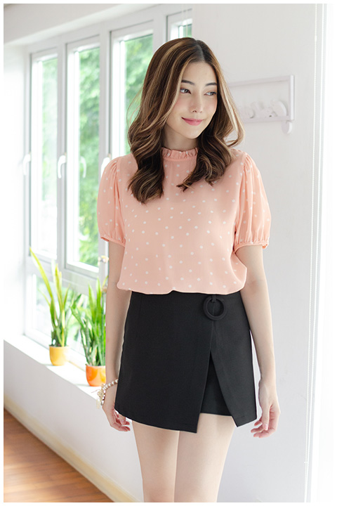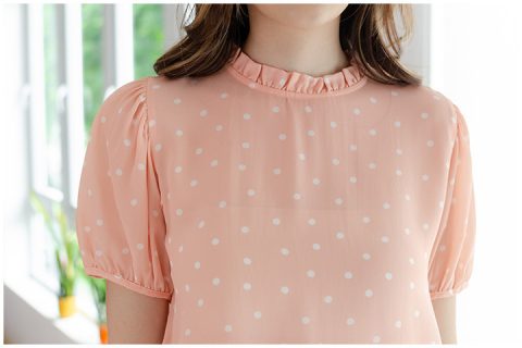 งานสวยหวาน คลาสซี่ดาวล้านดวง คอปิดจับจีบตั้งๆ ผ้าพิมพ์ลายจุด แขนตุ๊กตาสั้นกุ๊นปลายแขน ด้านหลังผ่าหยดน้ำติดก็ระดุม เรียบร้อยแบบหวานๆถูกใจแน่นอนค่ะ รุ่นนี้เนื้อสัมผัสเย็นนิดๆ ความหนาบางใกล้เคียงกับชีฟอง และแอบเงานิดหน่อยบางมุมค่ะ