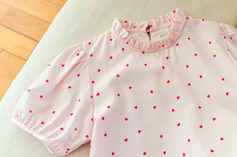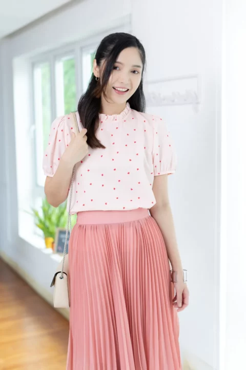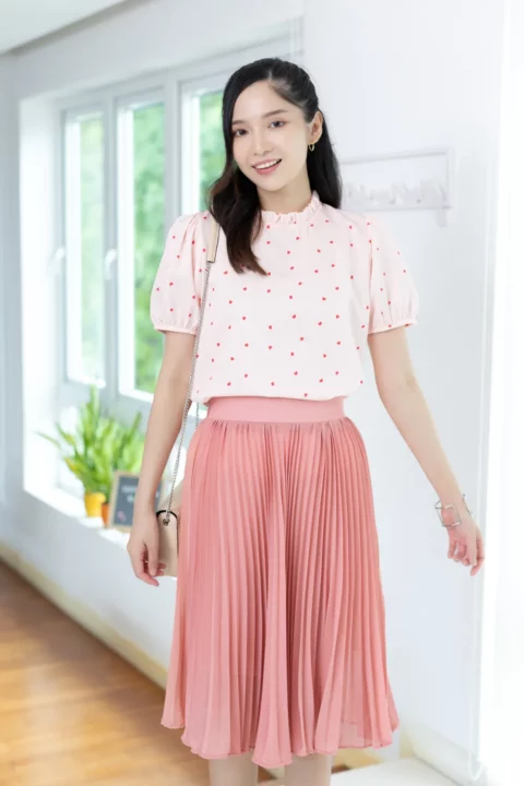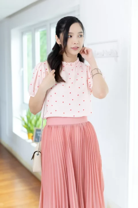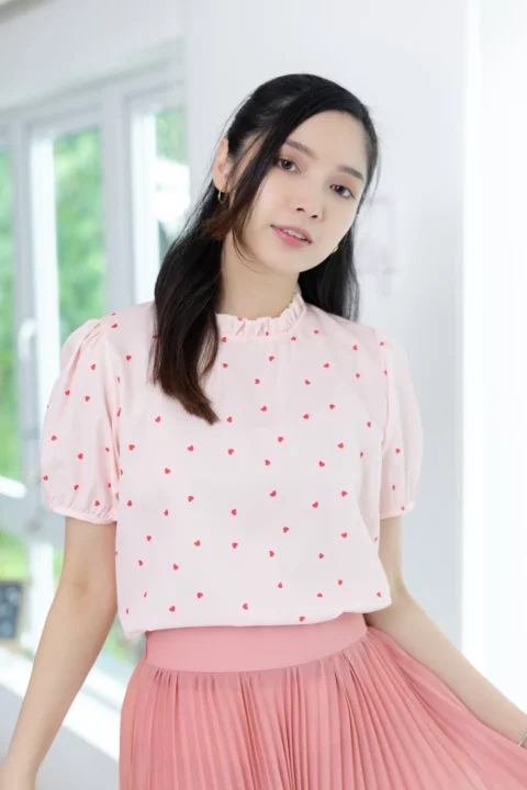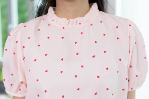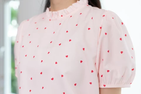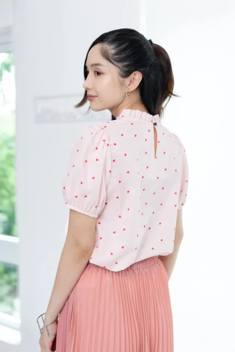MT2710 Ruff Collar Heart Blouse – Crinkled Pink