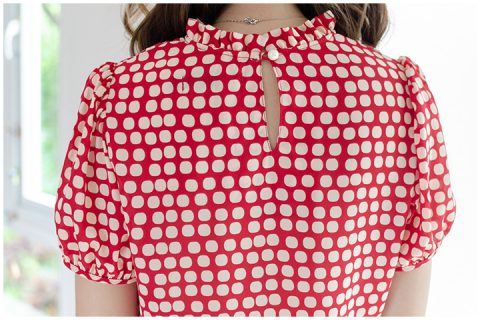 งานสวยหวาน คลาสซี่ดาวล้านดวง คอปิดจับจีบตั้งๆ ผ้าพิมพ์ลายกราฟิกสี่เหลี่ยมขอบมน ใส่สวยปังปัง แขนตุ๊กตาสั้นกุ๊นปลายแขน ด้านหลังผ่าหยดน้ำติดกระดุม เรียบร้อยแบบหวานๆถูกใจแน่นอนค่ะ