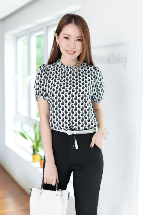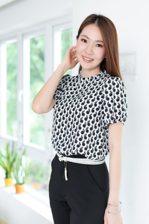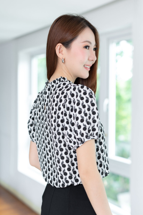 งานสวยหวานคลาสซี่ดาวล้านดวง เสื้อคอปิดจับจีบตั้งๆ แขนตุ๊กตาสั้น ด้านหลังผ่าหยดน้ำติดกระดุม ตัดเย็บด้วยผ้าไหมสปันความหนาบางใกล้เคียงอิตาลี สีขาวจะโปร่งแสงกว่าสีเข้มๆหน่อยนึงควรใส่ซับในนะคะ พิเศษลายใหม่ผ้าพิมพ์ลายแมวจิ๋วเกาะ Polka Dot เก๋มั่ก!