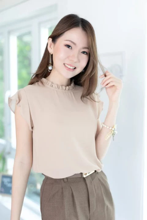 งานสวยหวานคลาสซี่ดาวล้านดวงที่ปรับทรงให้ตะมุตะมิขึ้น! ด้วยแขนกุดแต่งระบาย จีบคอตั้งๆ ด้านหลังผ่าหยดน้ำติดกระดุม ดูสบายๆเมื่อใส่เดี่ยว หรือสวมเสื้อคลุมทับก็โชว์งานจีบคอได้แบบเรียบร้อยกำลังดี