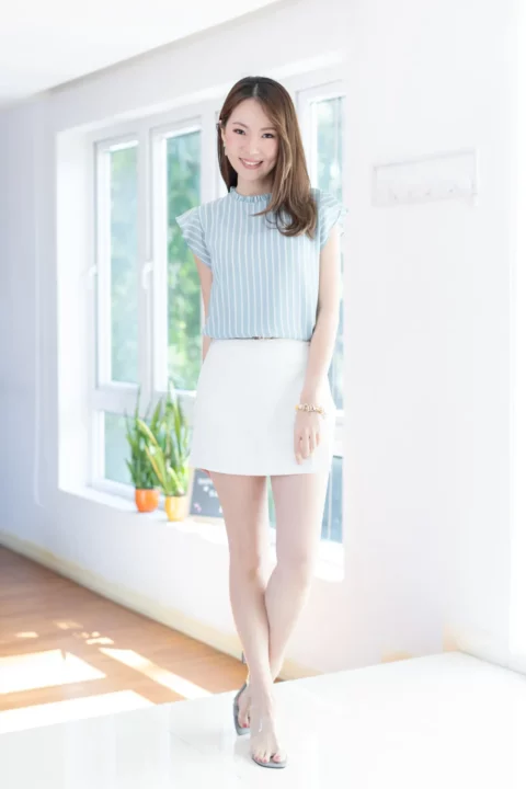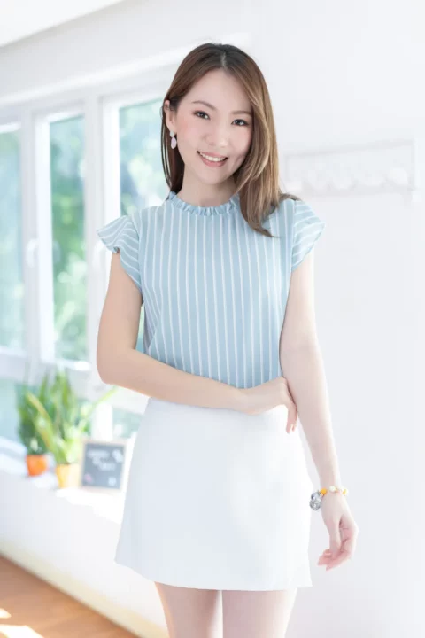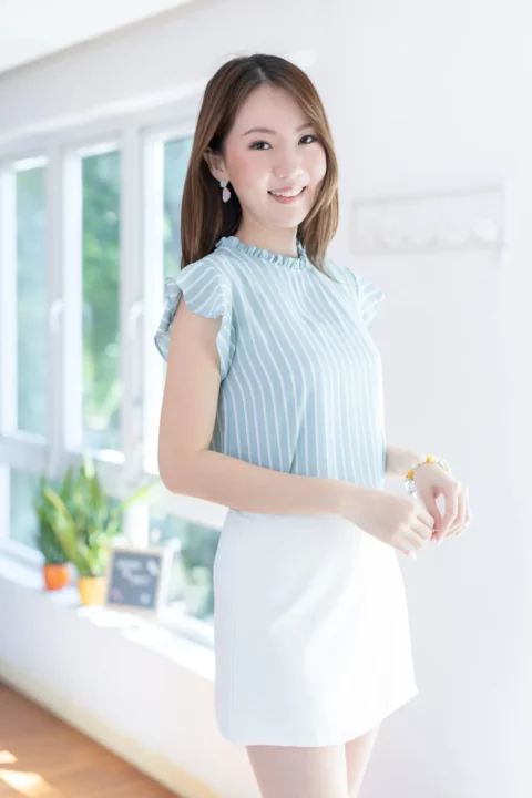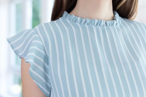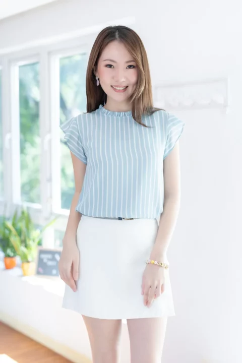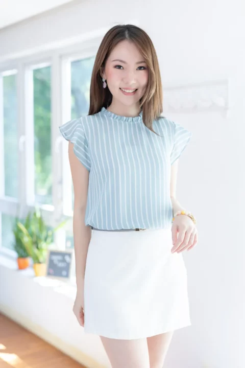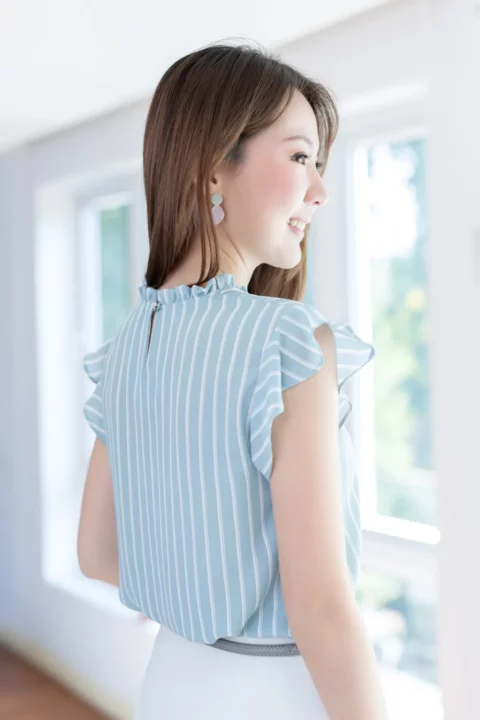 MT2711 Ruff Collar Frill Sleeve Blouse – Striped Light Blue