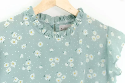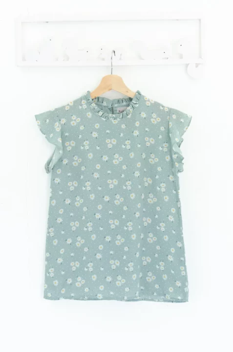 MT2711 Ruff Collar Frill Sleeve Blouse – Light Blue