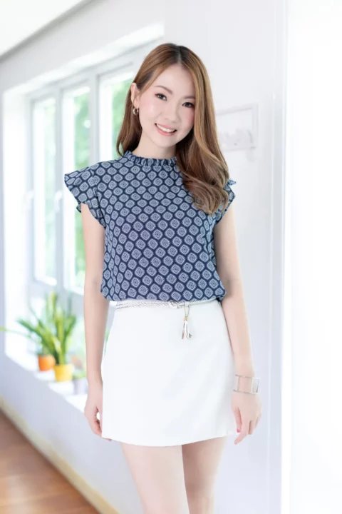 งานสวยหวานคลาสซี่ดาวล้านดวงที่ปรับทรงให้ตะมุตะมิขึ้น! ด้วยแขนกุดแต่งระบาย จีบคอตั้งๆ ด้านหลังผ่าหยดน้ำติดกระดุม ดูสบายๆเมื่อใส่เดี่ยว หรือสวมเสื้อคลุมทับก็โชว์งานจีบคอได้แบบเรียบร้อยกำลังดี