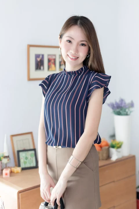 งานสวยหวานคลาสซี่ดาวล้านดวงที่ปรับทรงให้ตะมุตะมิขึ้น! ด้วยแขนกุดแต่งระบาย จีบคอตั้งๆ ด้านหลังผ่าหยดน้ำติดกระดุม ดูสบายๆเมื่อใส่เดี่ยว หรือสวมเสื้อคลุมทับก็โชว์งานจีบคอได้แบบเรียบร้อยกำลังดี