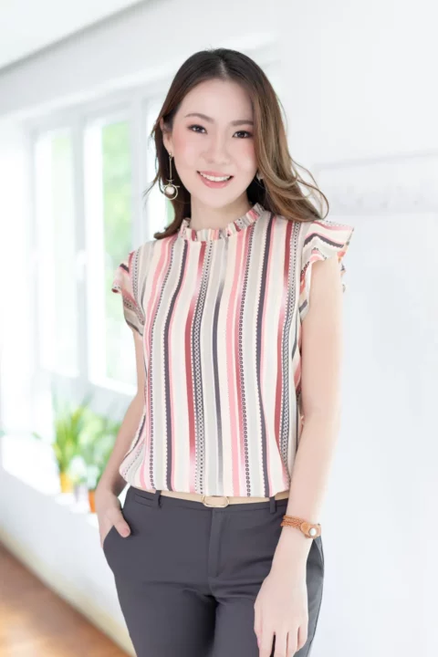 งานสวยหวานคลาสซี่ดาวล้านดวงที่ปรับทรงให้ตะมุตะมิขึ้น! ด้วยแขนกุดแต่งระบาย จีบคอตั้งๆ ด้านหลังผ่าหยดน้ำติดกระดุม ดูสบายๆเมื่อใส่เดี่ยว หรือสวมเสื้อคลุมทับก็โชว์งานจีบคอได้แบบเรียบร้อยกำลังดี
