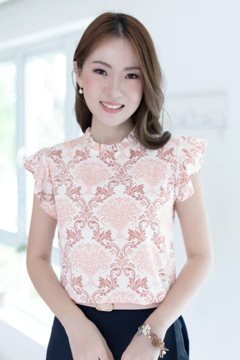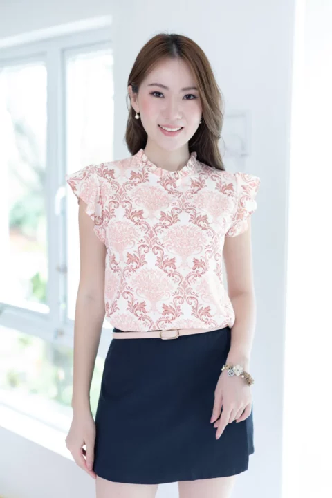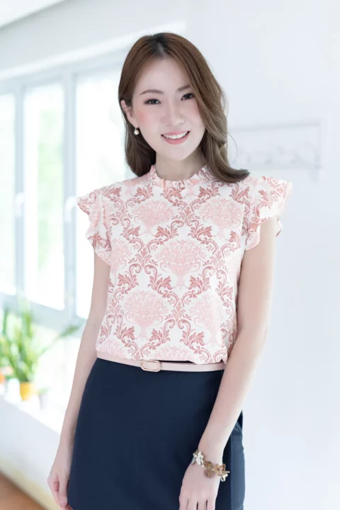MT1301 Point Collar Floral Blouse – Vanilla - Size 40