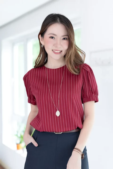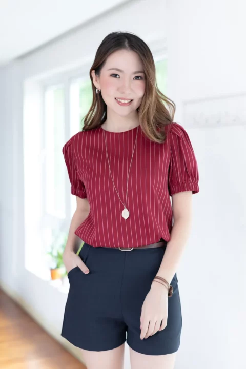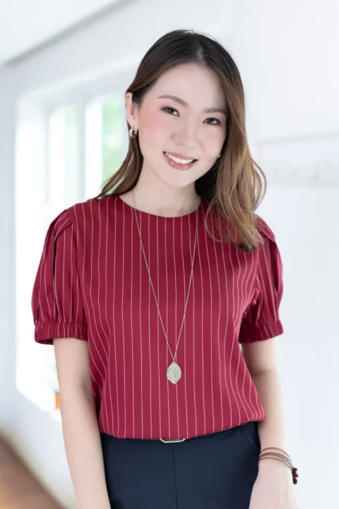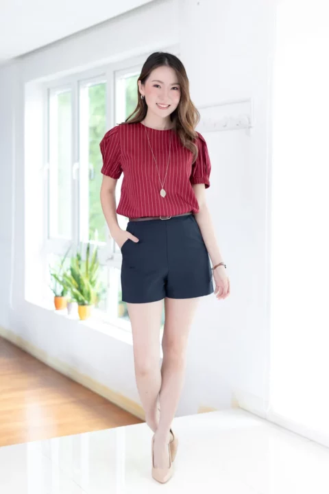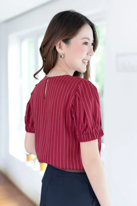 เสื้อทำงานคอกลมปิด ทรงใส่ง่ายๆมาแล้วว ทรงแขนตุ๊กตาพองนิดๆน่ารัก จีบต้นแขน จั๊มปลายยางยืดหนาพิเศษ ทรงสบายๆ ชายเสื้อตัดโค้งนิดนึง ผ้าทอแทรกลายริ้วเส้นบางๆ เนื้อผ้าดีความหนากลางๆไม่บางเกินไป น้ำหนักดีทรงสวยงาม