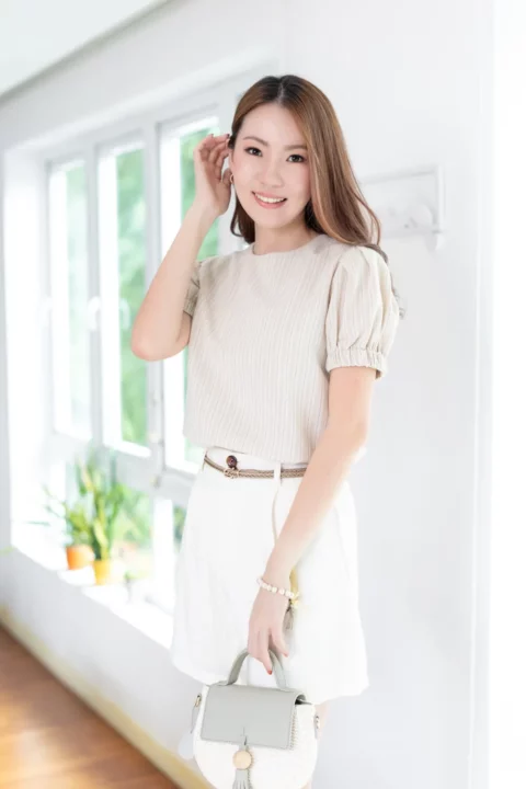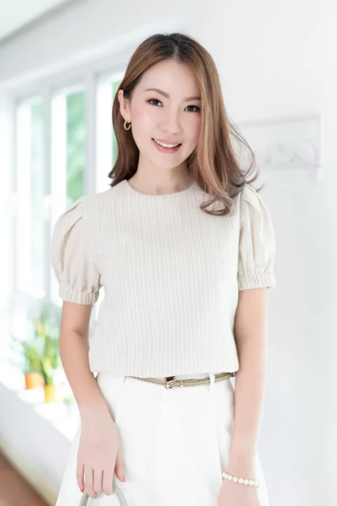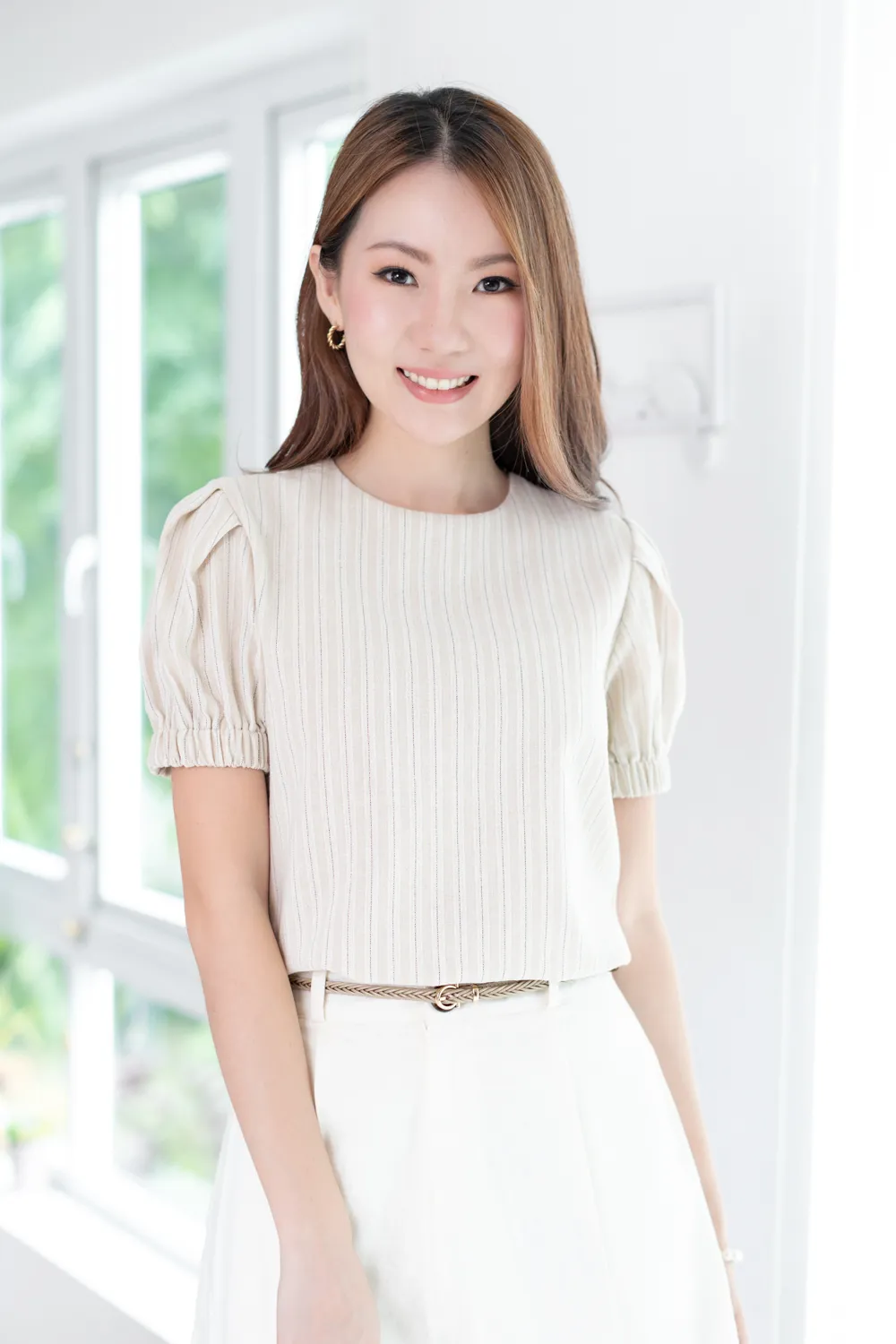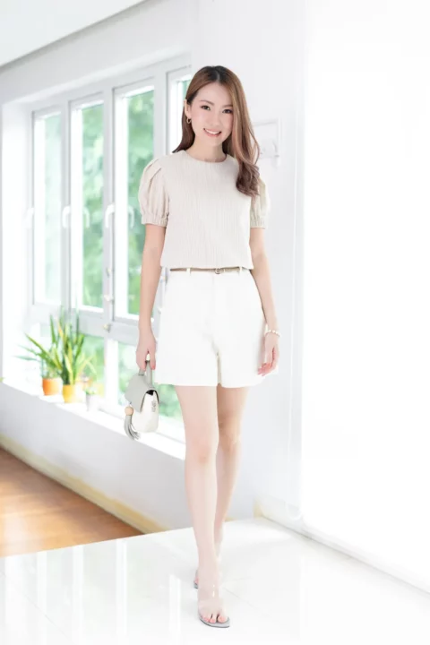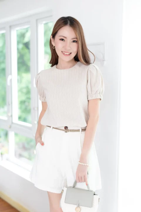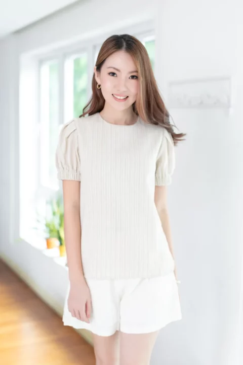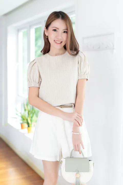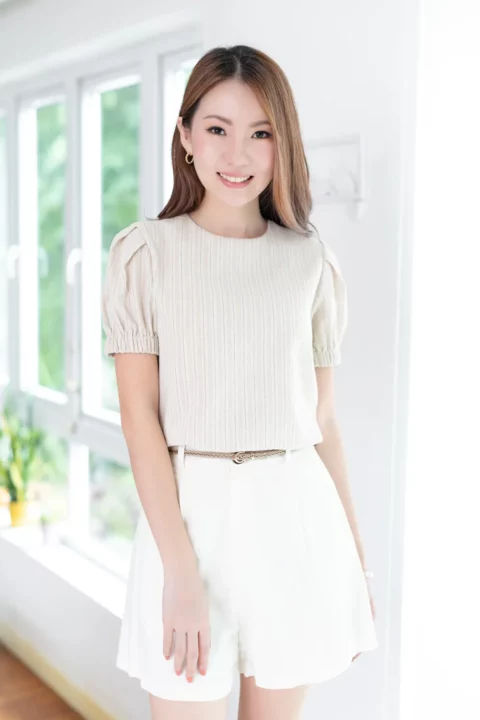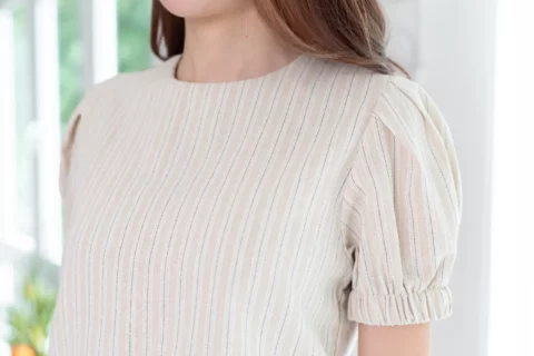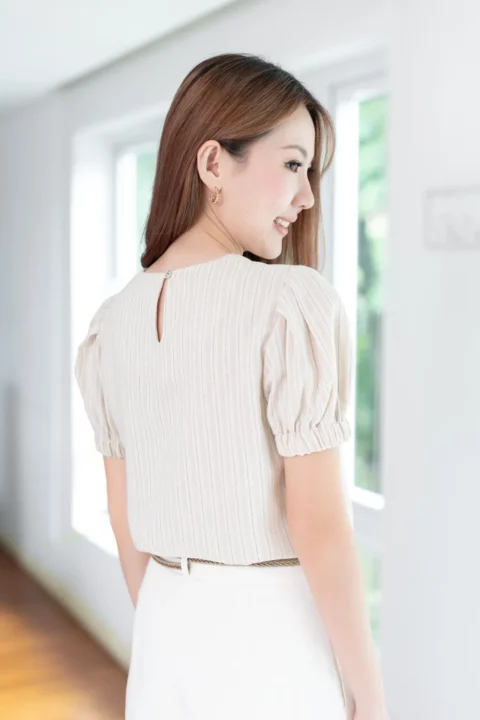 เสื้อทำงานคอกลมปิด ทรงใส่ง่ายๆมาแล้วว ทรงแขนตุ๊กตาพองนิดๆน่ารัก จีบต้นแขน จั๊มปลายยางยืดหนาพิเศษ ทรงสบายๆ ชายเสื้อตัดโค้งนิดนึง รุ่นนี้เป็นเนื้อลินินผสม เนื้อไม่บางมาก ทอแบบมี Texture ลายริ้วยางลงมา ชิลได้ เรียบร้อยก็ไหว ถูกใจใช่เลย
