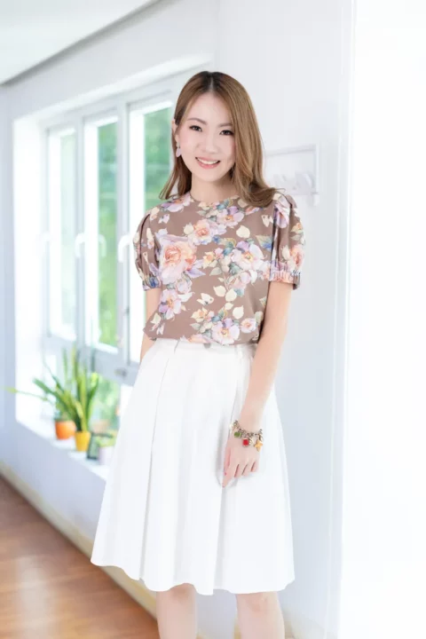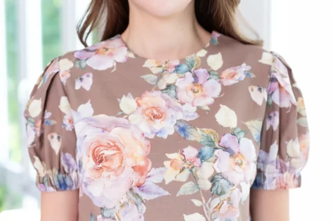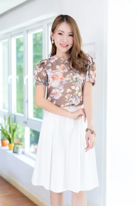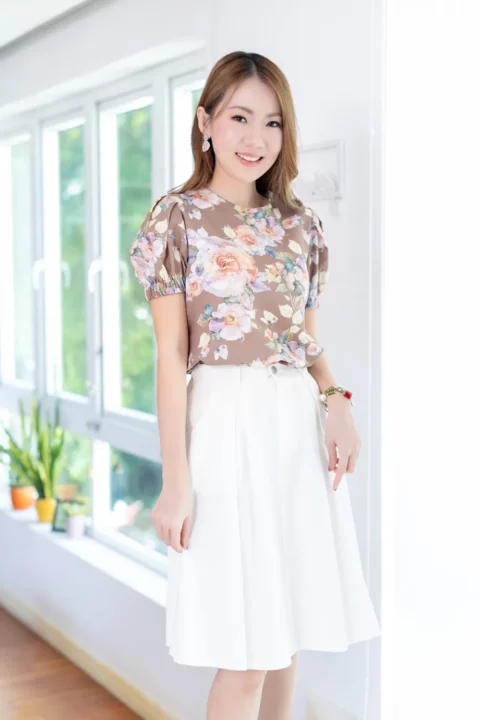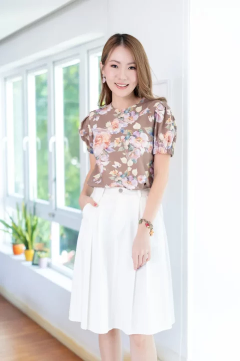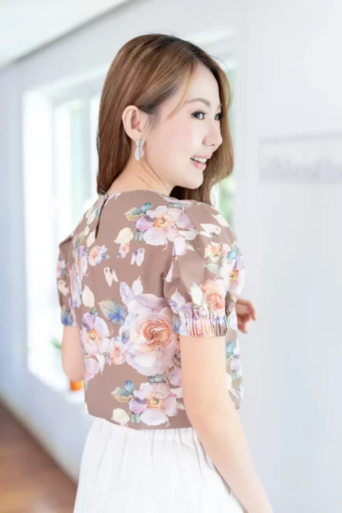 MT3016 Puff Sleeve Linen Blouse – Brown
