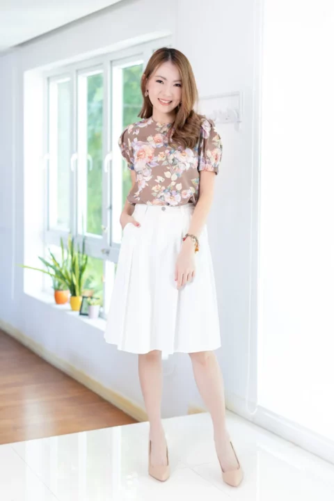 Size 38 – รอบอก 38”, คอกว้าง 6”, ไหล่ 14”, แขนยาว 9”, รอบวงแขน 19”, รอบปลายแขน 11”+, ยาว 24”, รอบชายเสื้อ 41”