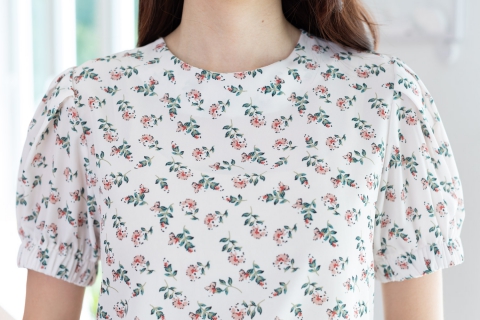 Color : ชมพูจางๆเกือบขาวนวล ลายดอกไม้ชมพู