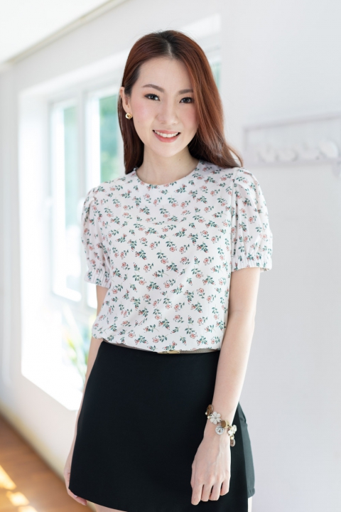 เสื้อทำงานคอกลมปิด ทรงใส่ง่ายๆมาแล้วว ทรงแขนตุ๊กตาพองนิดๆน่ารัก จีบต้นแขน จั๊มปลายยางยืดหนาพิเศษ ทรงสบายๆ ชายเสื้อตัดโค้งนิดนึง สวยแบบกำลังพอดี เนื้อผ้าลื่นเนียนดีต่อใจมั่ก