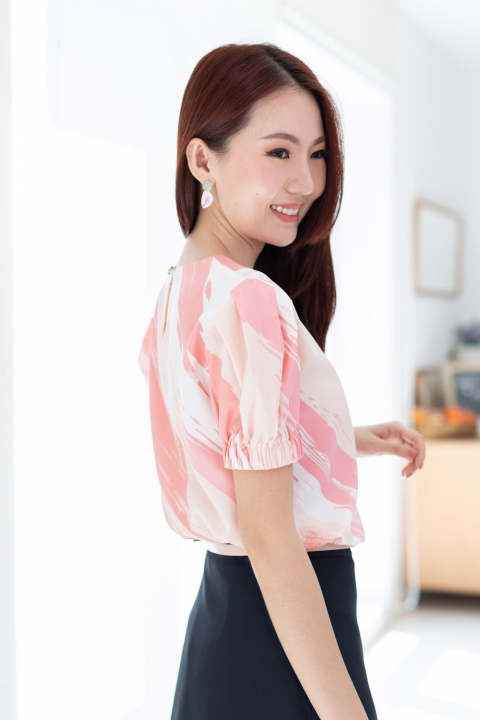 เสื้อทำงานคอกลมปิด ทรงใส่ง่ายๆมาแล้วว ทรงแขนตุ๊กตาพองนิดๆน่ารัก จีบต้นแขน จั๊มปลายยางยืดหนาพิเศษ ทรงสบายๆ ชายเสื้อตัดโค้งนิดนึง เนื้อผ้าไหมอิตาลีลายกราฟิกดอกไม้ สวยแบบกำลังพอดี ไม่โดดไป ไม่หวานเกินค่า