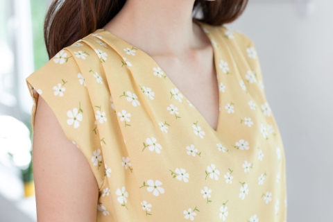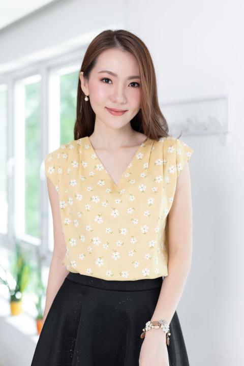 เสื้อคอวี ทรงแขนกุดแต่งแขนสั้นออกมาล้ำๆดูเรียบร้อย จับจีบซ้อนตรงไหล่ รุ่นนี้เหมือนจะเบสิคแต่ไม่ธรรมดา เพราะแมทช์ได้หลายลุค วันทำงานใส่เดี่ยวๆ เพิ่มความทางการจับสูทมาคลุม ไปได้ทุกงาน อะไรจะขนาดนี้!