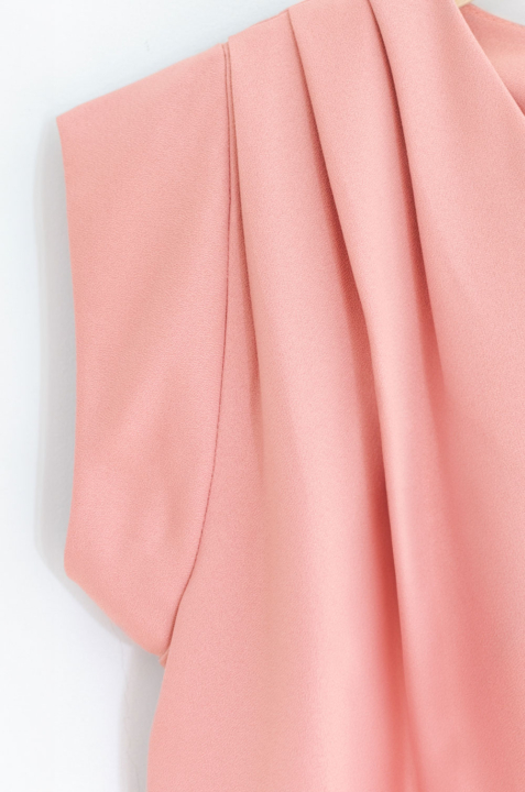 เสื้อคอวี ทรงแขนกุดแต่งแขนสั้นออกมาล้ำๆดูเรียบร้อย จับจีบซ้อนตรงไหล่ รุ่นนี้เหมือนจะเบสิคแต่ไม่ธรรมดา เพราะแมทช์ได้หลายลุค วันทำงานใส่เดี่ยวๆ เพิ่มความทางการจับสูทมาคลุม ไปได้ทุกงาน อะไรจะขนาดนี้!