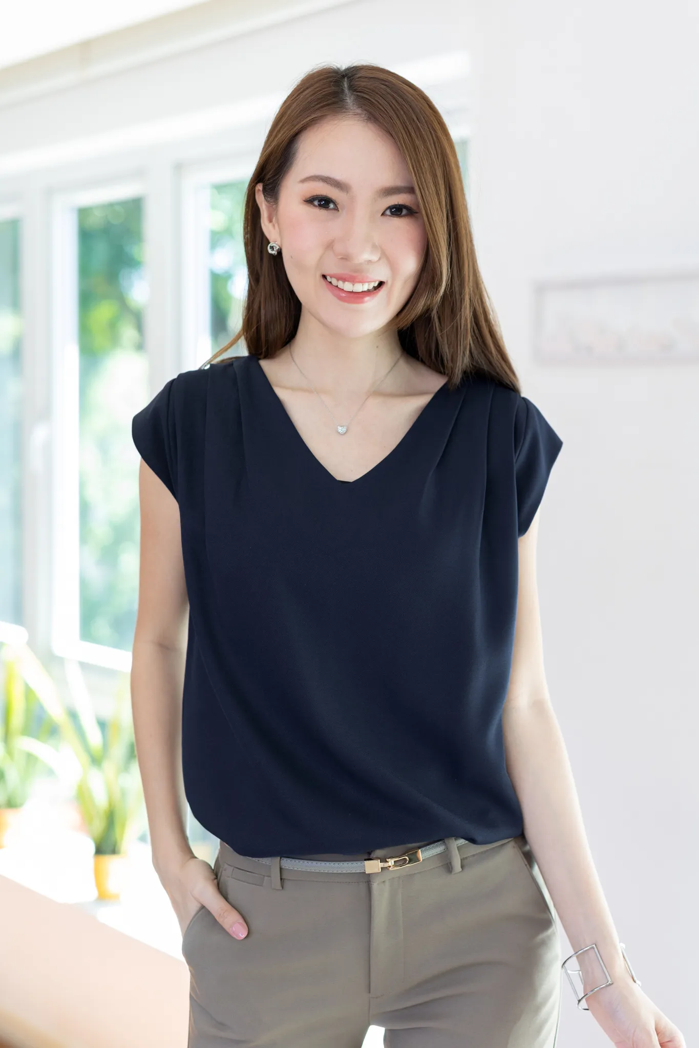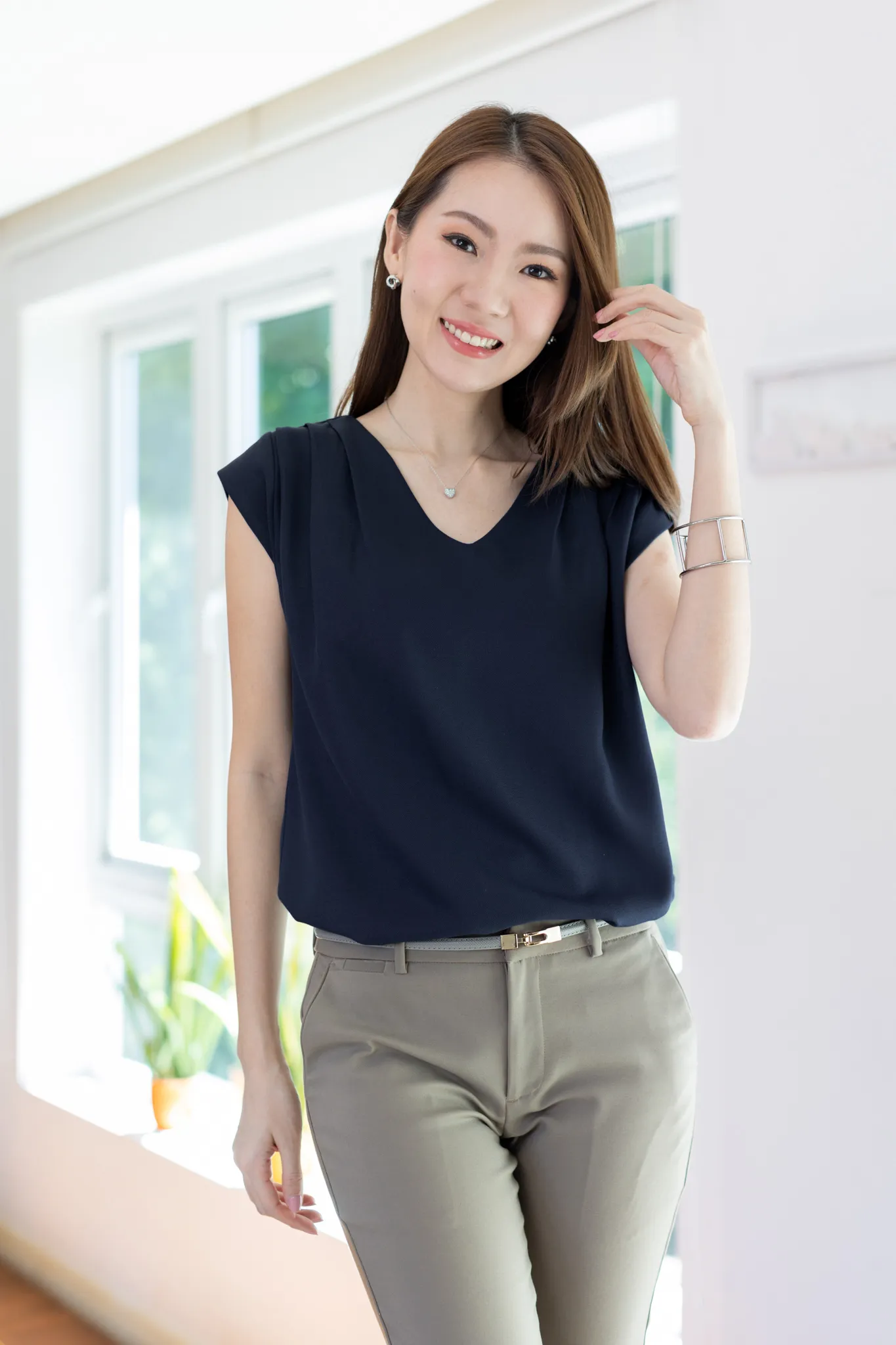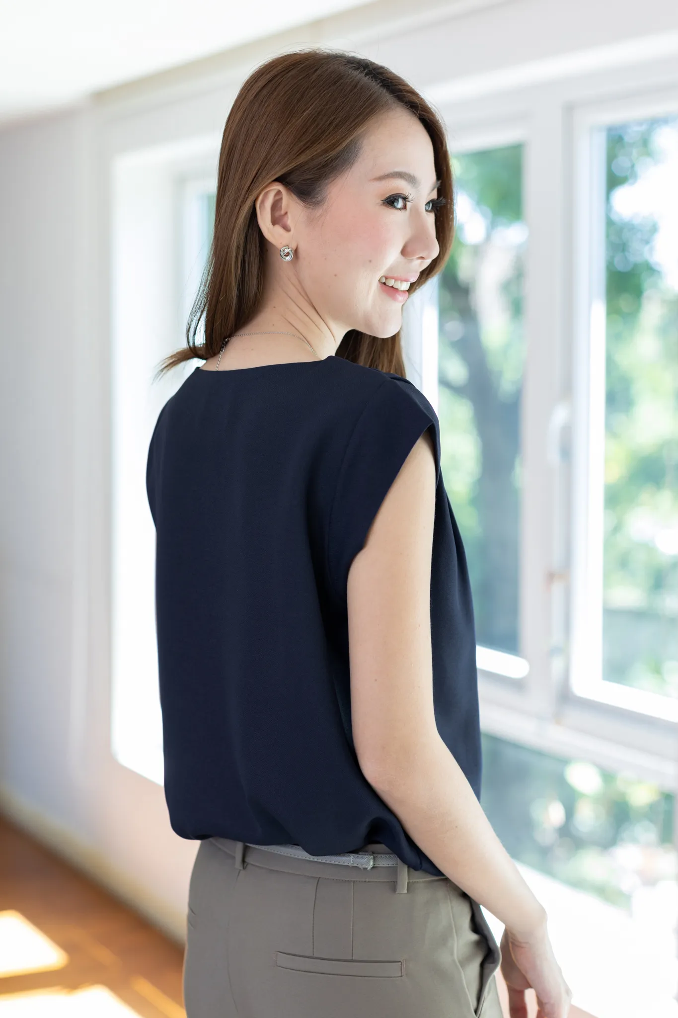 MT3100 Classic Sleeveless Blouse – Dark Navy Blue