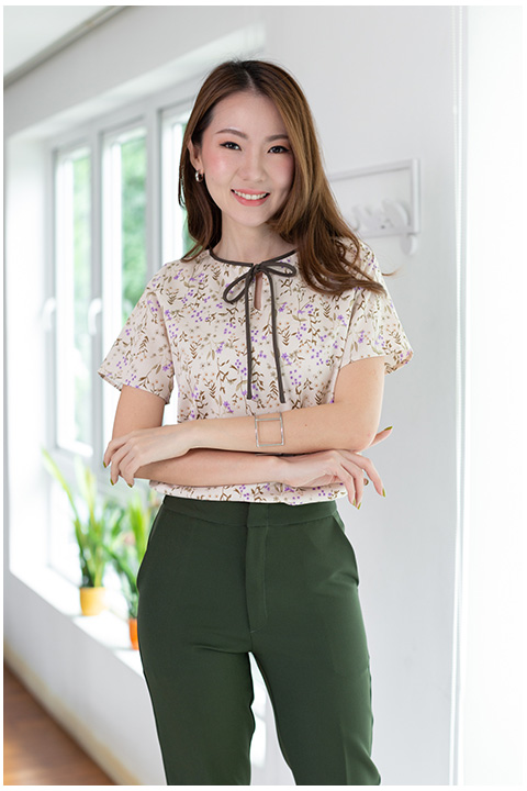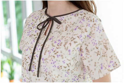 เสื้อแขนสั้น คอกลม ผ่าหยดน้ำโค้งด้านหน้า แต่งขอบกุ๊นรอบคอพร้อมสายโบว์ยาวด้านหน้า ทรงน่ารักดูสบายๆ แบบนี้ใส่ได้ทั้งลุคทำงานคู่กางเกง-กระโปรงแบบเรียบร้อย ส่วนวันหยุดจับคู่กางเกงผ้าขาสั้นและยาวก็ได้หมด หรือใส่คู่กับยีนส์ก็น่ารักนะคะ