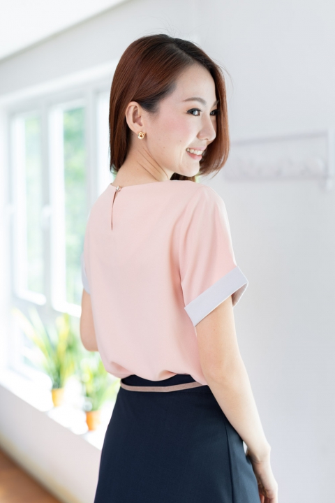 เสื้อเนื้อดี ด้านหน้าแต่งปกบัวห่าง ด้านหลังผ่าหยดน้ำติดกระดุมสวมใส่ง่าย แขนสั้นแต่งขอบด้วยผ้าพื้นแล้วพับเย็บฟิกซ์ ผ้าโฟร์เวย์เนื้อนิ่ม ลุคนี้เรียบร้อย สวยแบบสบายๆค่ะ