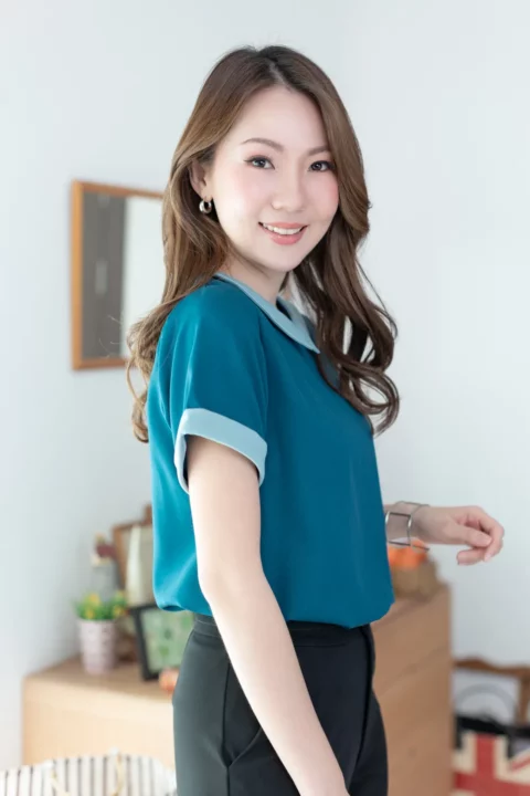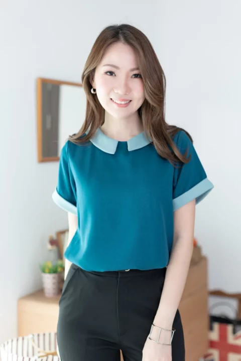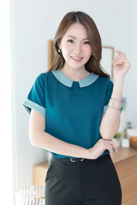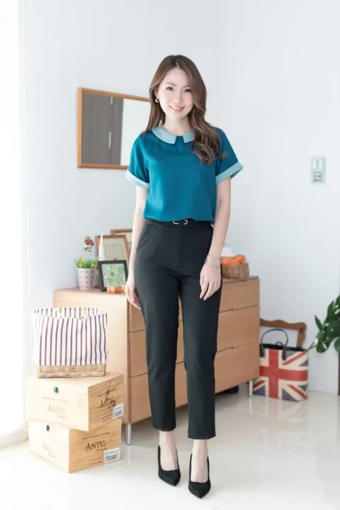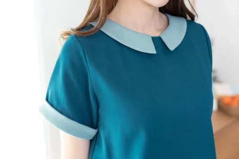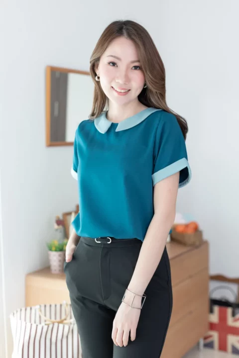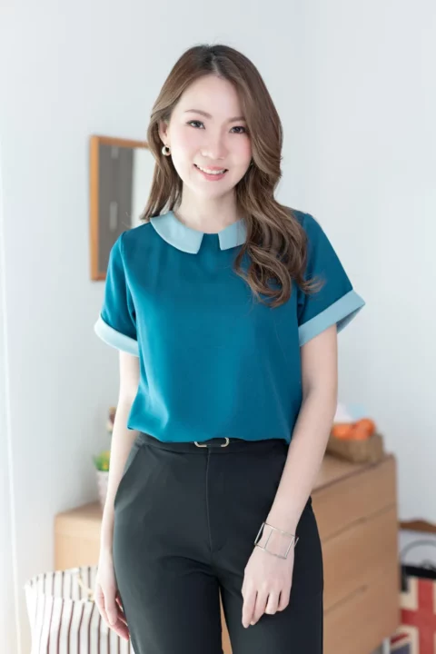 MT3519 Short Sleeve Collar Blouse – Ocean Green